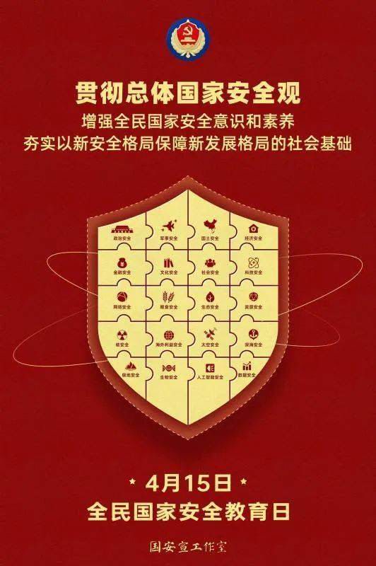 《中華人民共和國***法》第十四條明確規(guī)定,每年的4月15日是全民***教育日。今年的4月15日是第八個(gè)全民***教育日,主題是“貫徹總體***觀,增強(qiáng)全民***意識(shí)和素養(yǎng),夯實(shí)以新安全格局保障新發(fā)展格局的社會(huì)基礎(chǔ)。